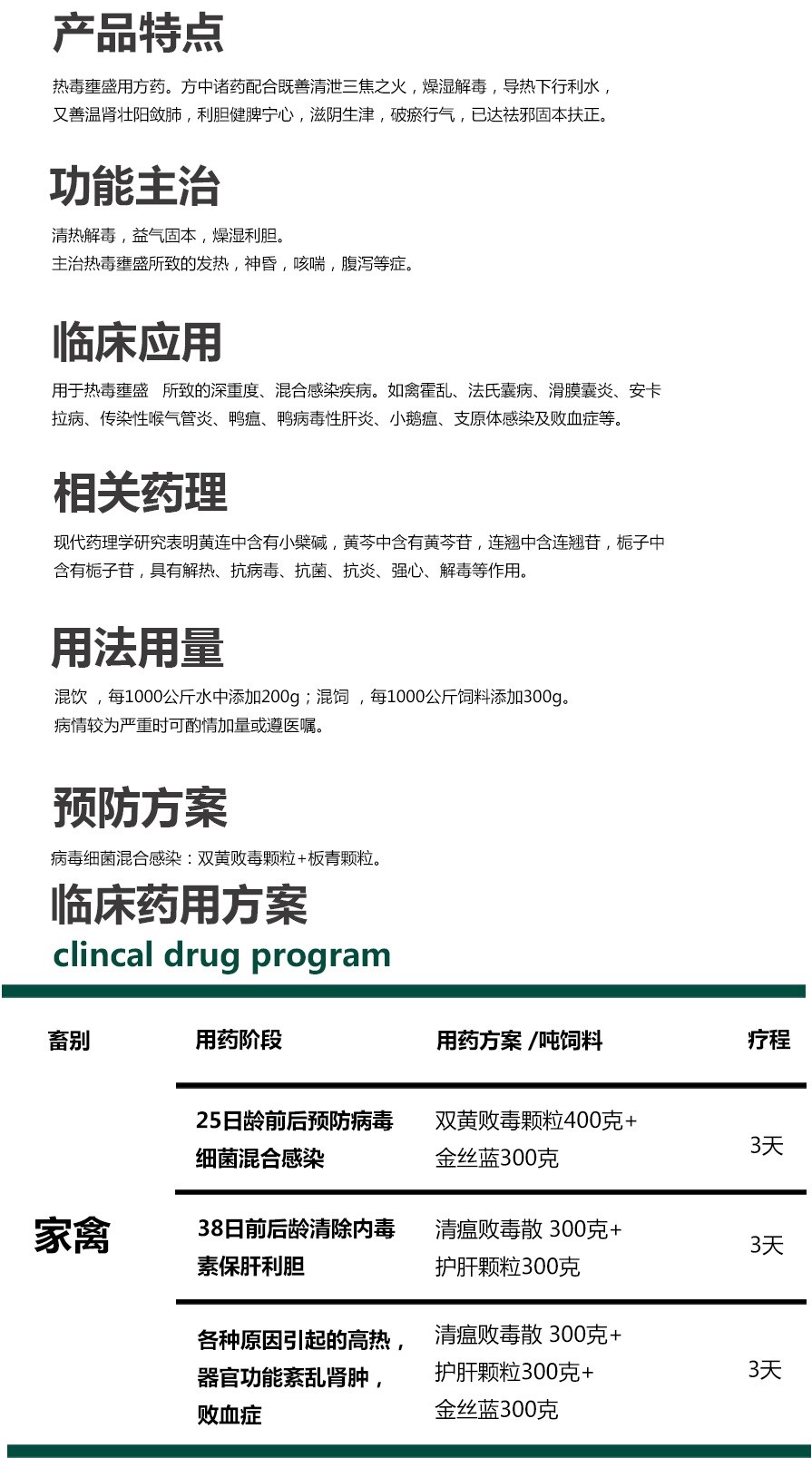 清熱解毒,益氣固本,燥濕利膽。 主治熱毒壅盛所致的發(fā)熱,神昏, 咳喘,腹瀉等癥。