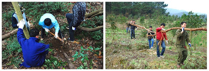 2月21日,中成創(chuàng)始人傅仲襄先生再次親自帶隊,帶領(lǐng)集團(tuán)員工一行19人,驅(qū)車前往江西省新干縣南部大落峰山脈,進(jìn)行了此次《問尋良藥·在路上——江西中成集團(tuán)中藥標(biāo)本采集行動》之藤本采集之行。 凌晨,迎著破黑的朝陽,尋藥小分隊開啟了今天遠(yuǎn)行尋藥行動。初春是個采藥制藥的好季節(jié),沒有冬天的寒氣,也沒有夏日深林的濕熱和蚊蟲的肆虐。創(chuàng)始人兼采藥隊長帶領(lǐng)大家翻山越嶺,跨溝爬涯,一路上邊教我們識藥采藥,邊跟我們講解每味藥的功效作用。 隊員們已經(jīng)不是第一次跟隨隊長深山尋藥了,他們早已練就“眼觀六路,耳聽八方”的本領(lǐng),在深山老林中開辟新路,他們駕輕就熟。汗水淋濕了衣衫,卻浸不透內(nèi)心的執(zhí)著。在一片藤蔓紛繁交錯的樹林中,隊長敏銳地發(fā)現(xiàn)了粗壯的鉤藤和黑血藤,還有貫穿山林幾十米長的大活血藤。