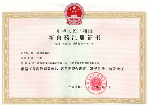2012年03月02日,由我公司自主研發(fā)的“注射用黃連”順利獲得國家三類新獸藥證書,這是我公司繼“注射用雙黃連”粉針、 “護(hù)肝顆!焙蟮挠忠粋突破。